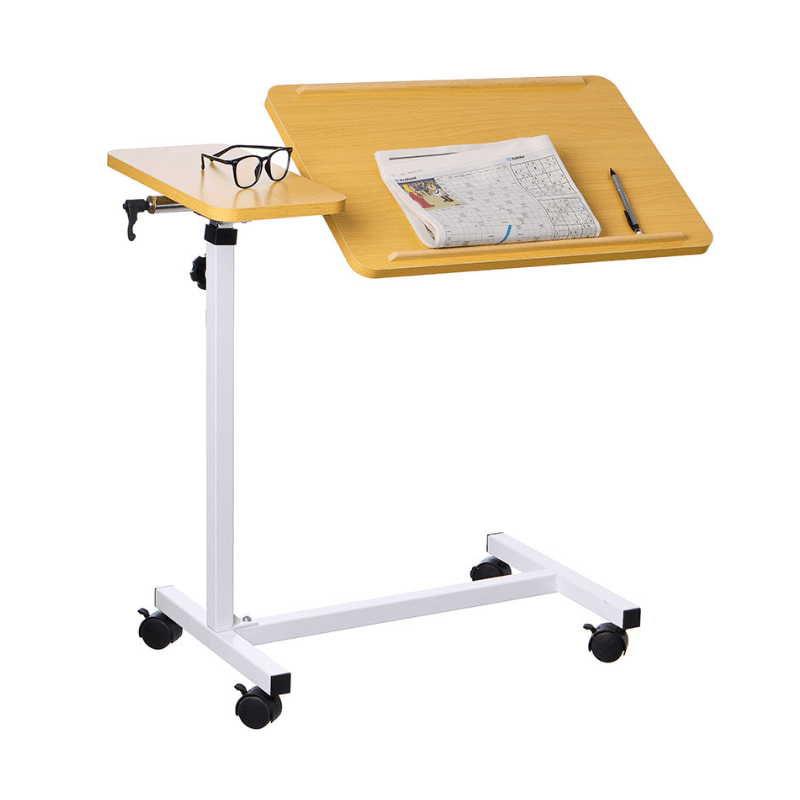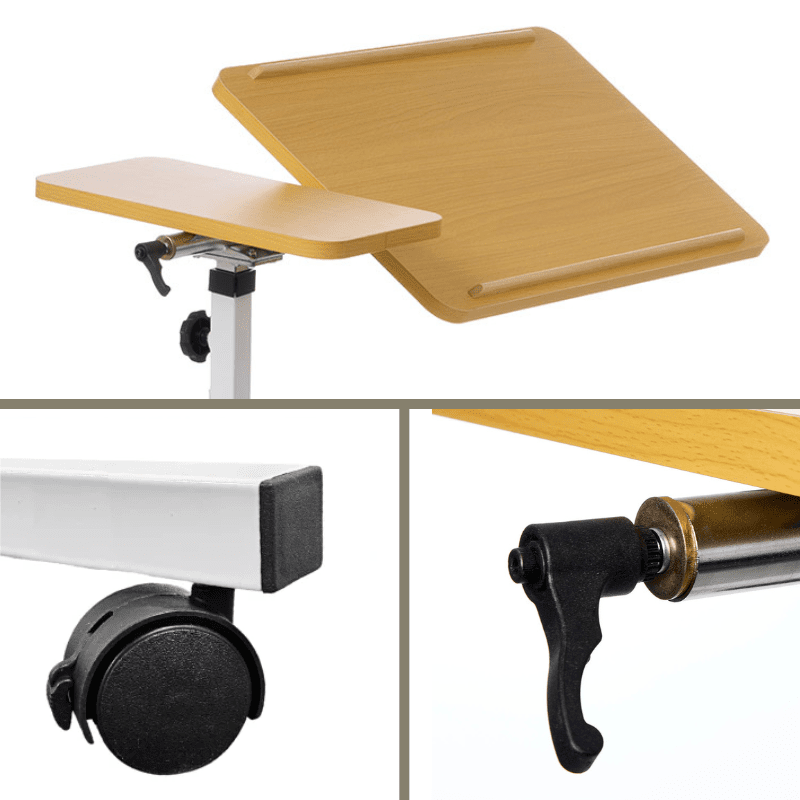 Dette fleksible sengebord er ideelt til både sengen og kørestolen. Med 4 drejelige hjul (der alle kan låses) kan bordet nemt flyttes rundt og placeres præcis, hvor du har brug for det.