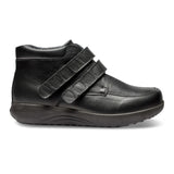Lækker herrestøvle med to justerbare velcroremme og temperaturregulerende foer fra New Feet. Støvlen er lavet af glat sort læder med Orthostretch ®, så den former sig efter foden.