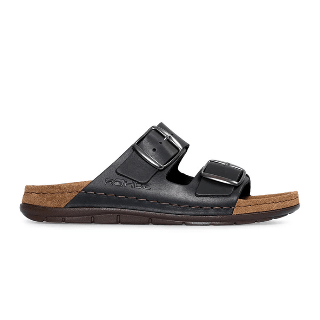 Elegant og tidløs damesandal fra Rohde – perfekt til både hverdag og fritid. Sandalen er lavet i flot sort læder af høj kvalitet og har to justerbare remme, som sikrer en god og individuel pasform.