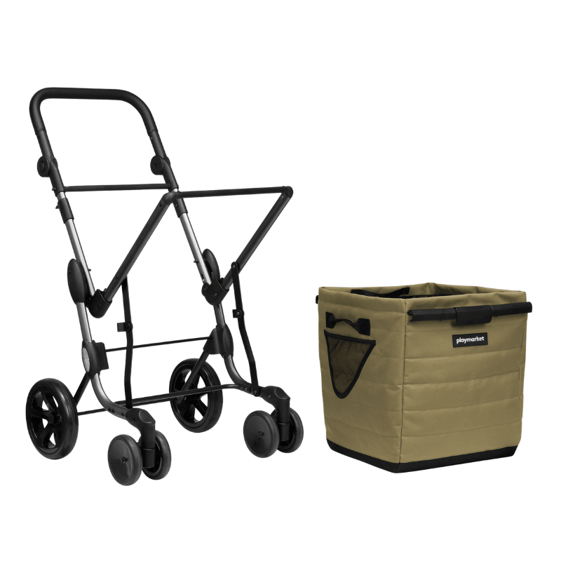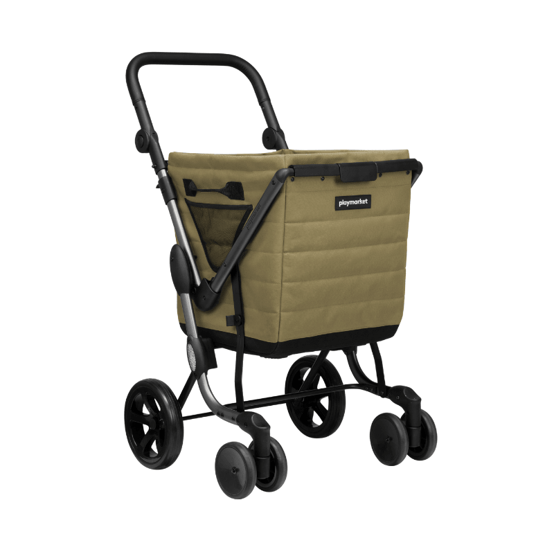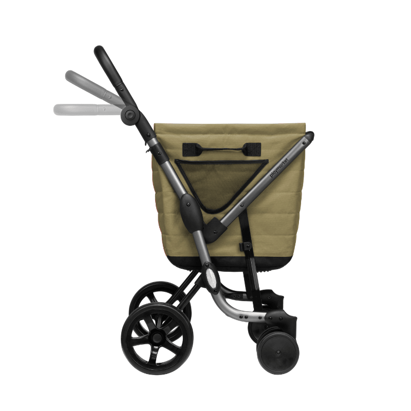 Indkøbsvognen har en stor rummelig tekstilkurv, som er produceret i et stærkt vandtæt materiale. På denne nye model er det blevet nemmere at (af)montere tasken på stellet, og inderposen kan tages af og vaskes.