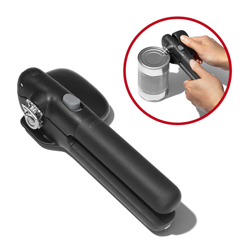 Nu kan du åbner konservesdåser uden besvær med Lock & Go dåseåbneren. Det bløde, ergonomiske håndtag ligger godt i hånden og kræver kun minimal kraft, mens det skarpe hjul i rustfrit stål sikrer en nem og præcis åbning.
