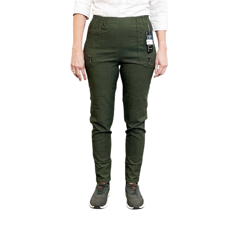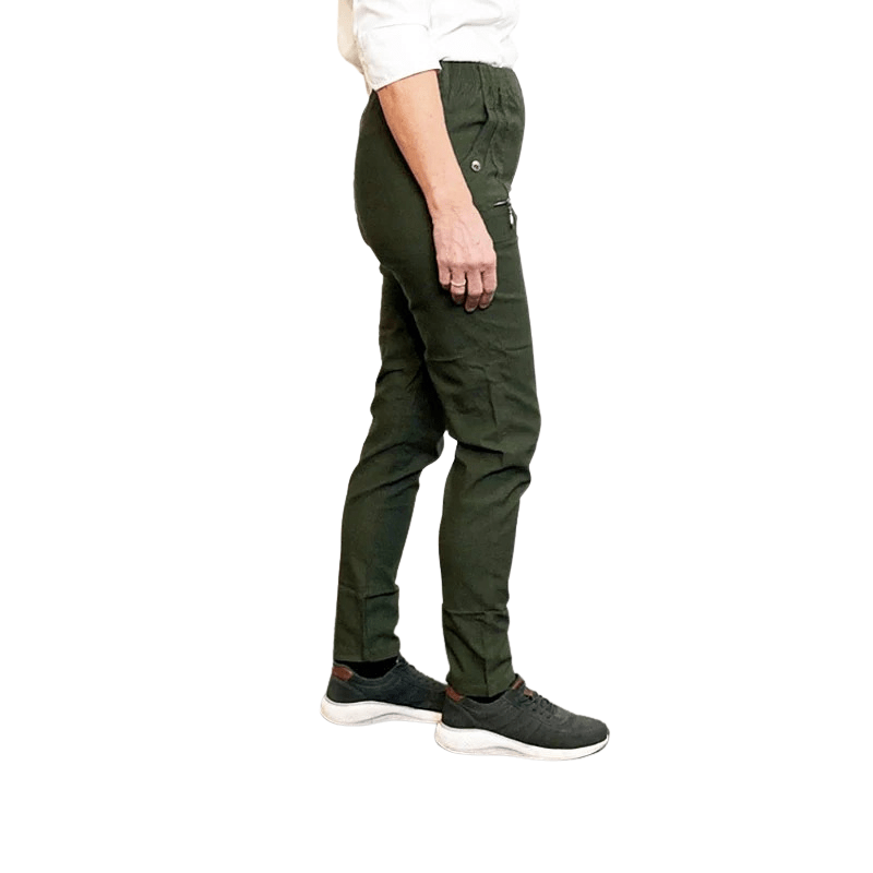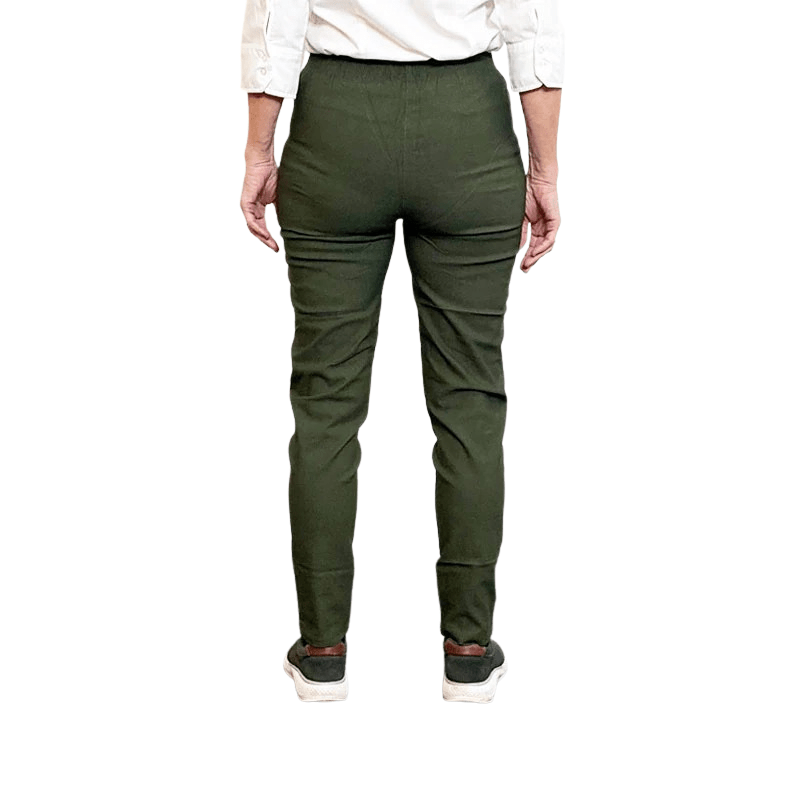 Pantalon tendance et confortable, arborant une teinte olive profonde, avec ceinture élastiquée cousue pour s'adapter à la majorité des silhouettes.