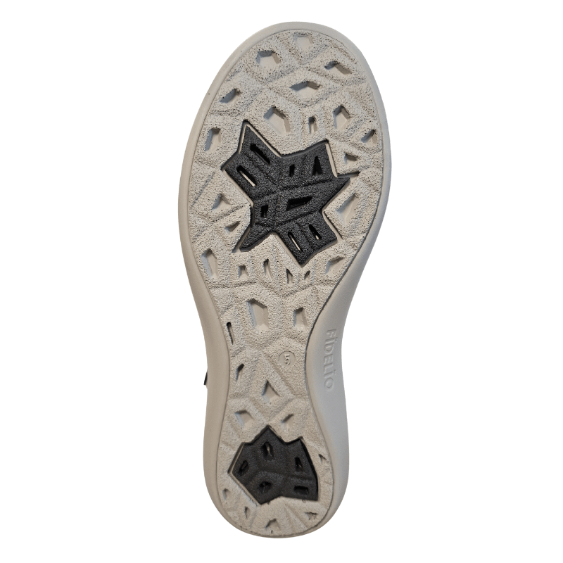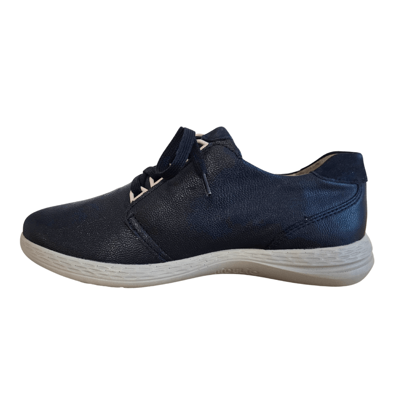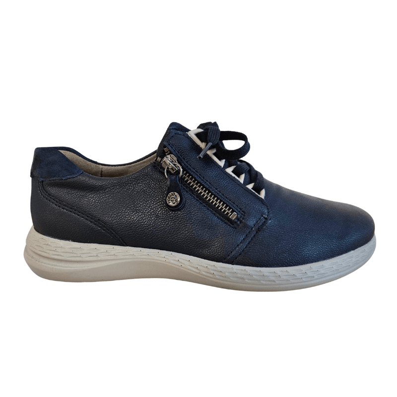 Sneaker Fidelio bleu marine avec dessus en cuir et multi-stretch pour un confort optimal, une durabilité et une flexibilité. La chaussure est équipée de lacets et d'une fermeture éclair sur le côté, idéale pour un usage quotidien.